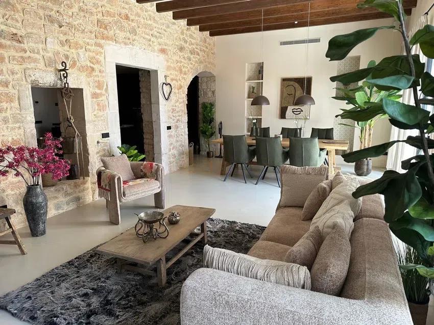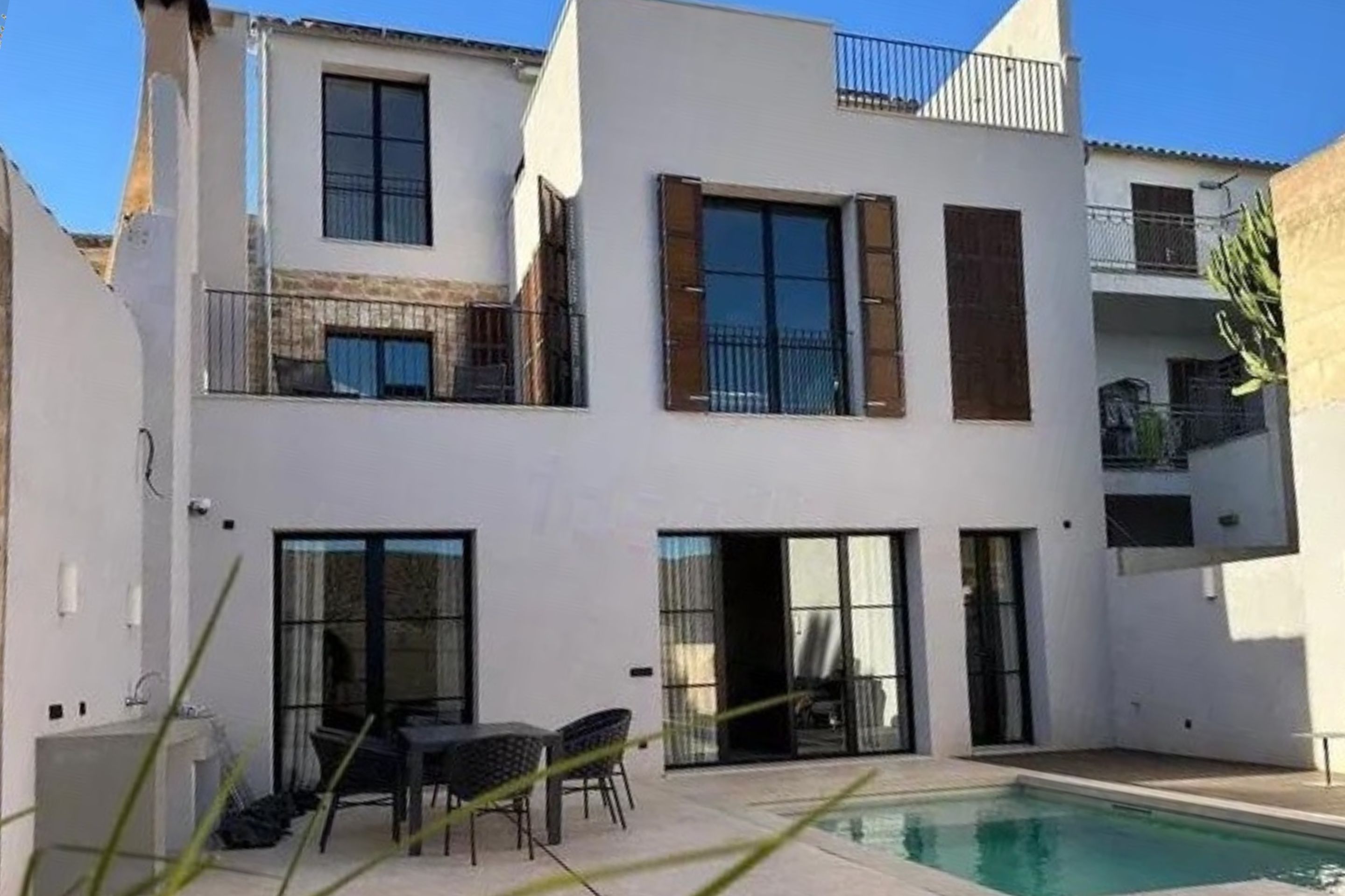 Diese außergewöhnliche, vollständig renovierte Stadthaushälfte aus dem Jahr 1911 beeindruckt mit ihren originalen Sandsteinmauern aus Santanyí, kombiniert mit modernstem Wohnkomfort und äußerst pflegeleichten Materialien. Das Haus verfügt über zwei Garagen – eine größere für ein Auto sowie eine kleinere für Motorrad, Scooter oder Fahrräder, eine echte Seltenheit.