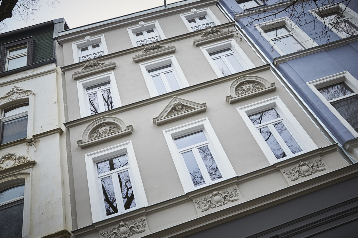 Immobilien55 präsentiert Ihnen dieses modernisierte Mehrfamilienhaus im beliebten Kölner Stadtteil Mülheim. Das Gebäude stammt aus dem Baujahr 1920 und präsentiert sich mit einer ansprechenden Gründerzeit-Fassade, die dem Haus einen charmanten, historischen Charakter verleiht. Auch die umliegenden Gebäude der Straße folgen diesem Stil und prägen ein harmonisches, stimmiges Straßenbild. Ein Denkmalschutz besteht für die Immobilie nicht.