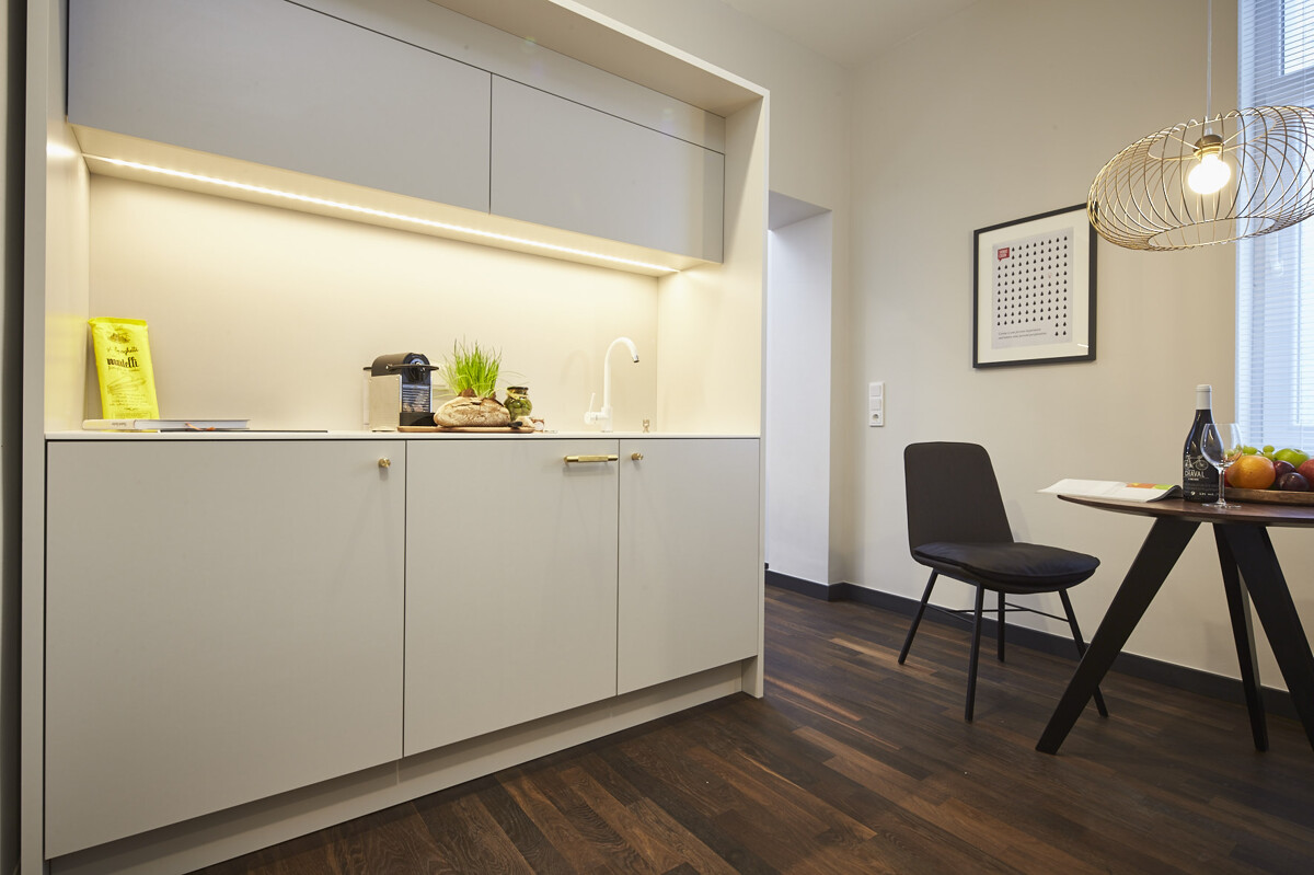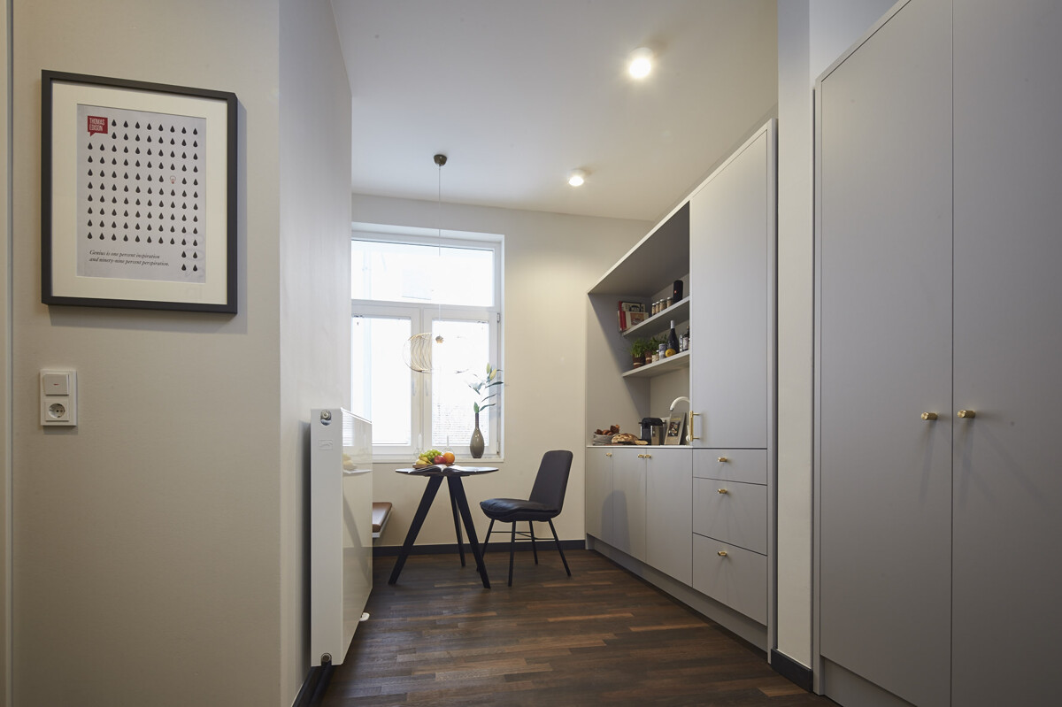 Im Inneren erwarten die Bewohner modern gestaltete, lichtdurchflutete Wohnungen, die im Rahmen einer umfassenden Sanierung im Jahr 2025 vollständig neu entwickelt wurden. Hierbei wurden Fassadenbereiche, Stromleitungen, Wasserleitungen und Heiztechnik erneuert. Alle Wohnungen sind vollmöbliert, hochwertig und geschmackvoll eingerichtet. Jede Einheit verfügt über eine voll ausgestattete Küche sowie moderne Badbereiche, hochwertige Bodenbeläge und frisch überarbeitete Wandflächen.