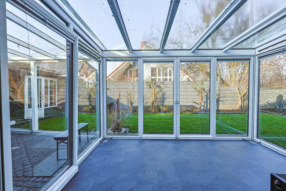 Auf ca. 142 m² Wohnfläche erwarten Sie fünf Zimmer, darunter vier gemütliche Schlafzimmer, drei moderne Badezimmer und ein Einliegerbereich, ideal für Gäste oder zur Vermietung. Der Wohnbereich bietet eine behagliche Atmosphäre, während der Wintergarten und die Glasüberdachung lichtdurchflutete Räume schaffen, die zum Verweilen einladen.