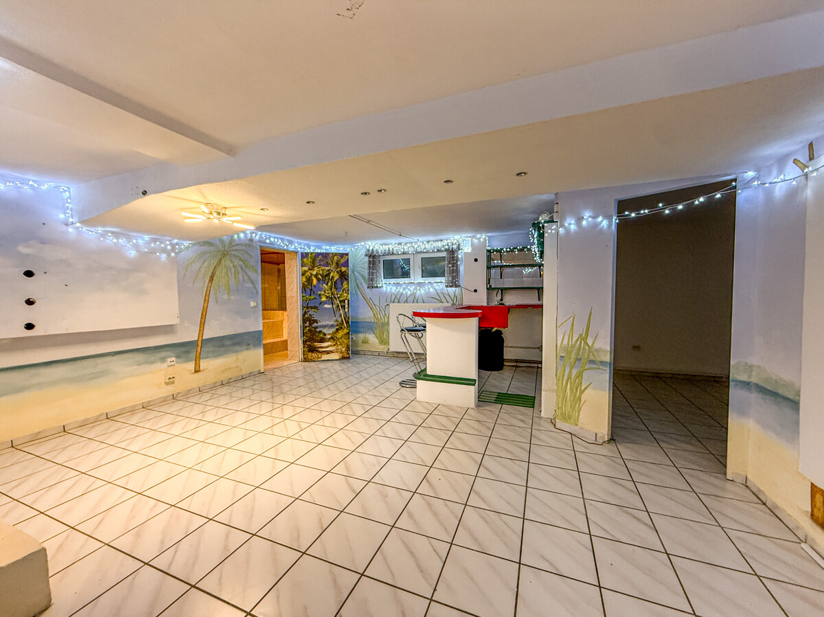 Das Haus ist voll unterkellert und bietet einen großzügigen Partykeller, eine Kellerbar, einen Fitnessraum, Sauna und Whirlpool – perfekte Rückzugs- und Freizeiträume für die ganze Familie. Der Garten mit Gartenhaus, Terrasse und direktem Zugang zur Natur rundet das Wohnangebot ab.
