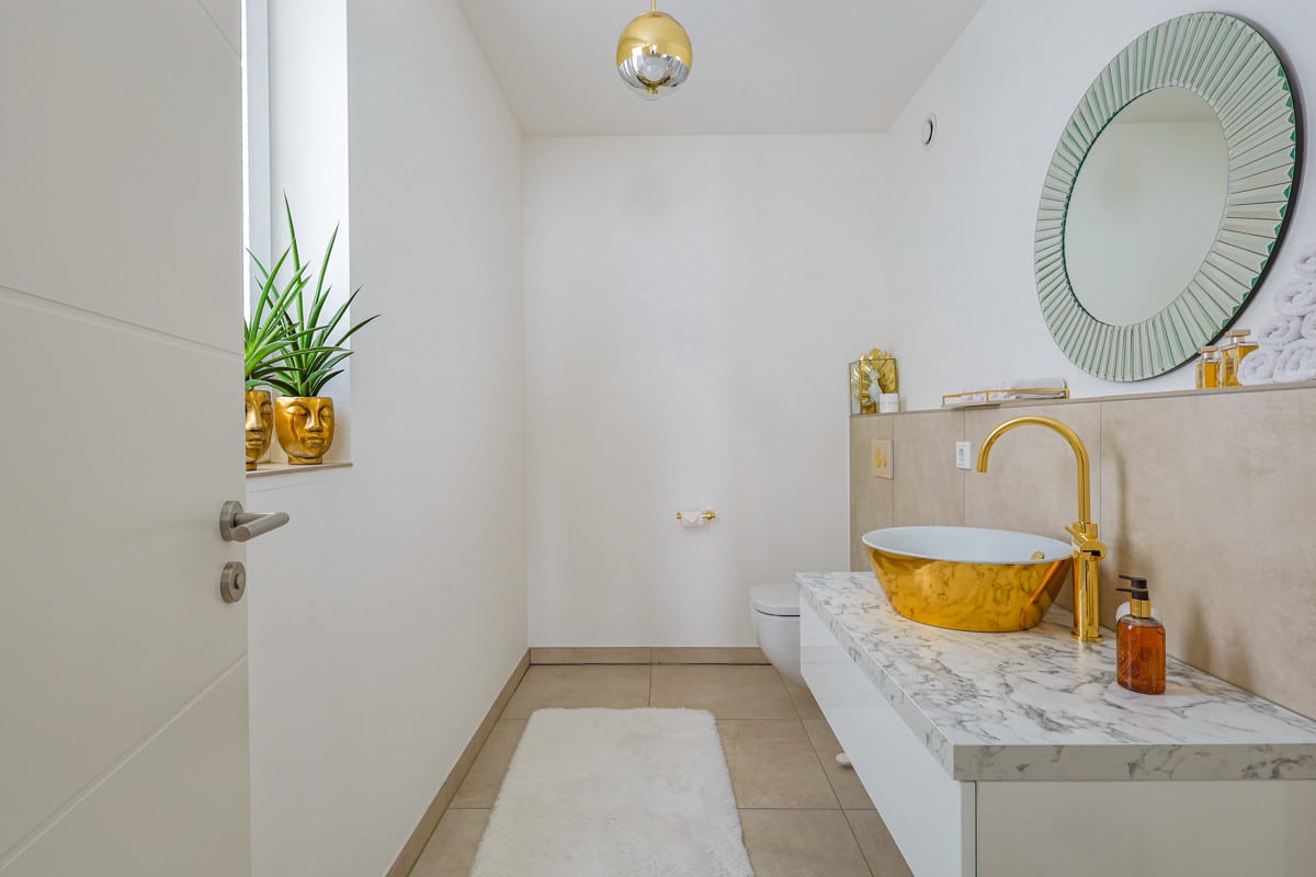 • Zwei weitere elegante Badezimmer und einem separatem Gäste-WC mit edlen Materialien