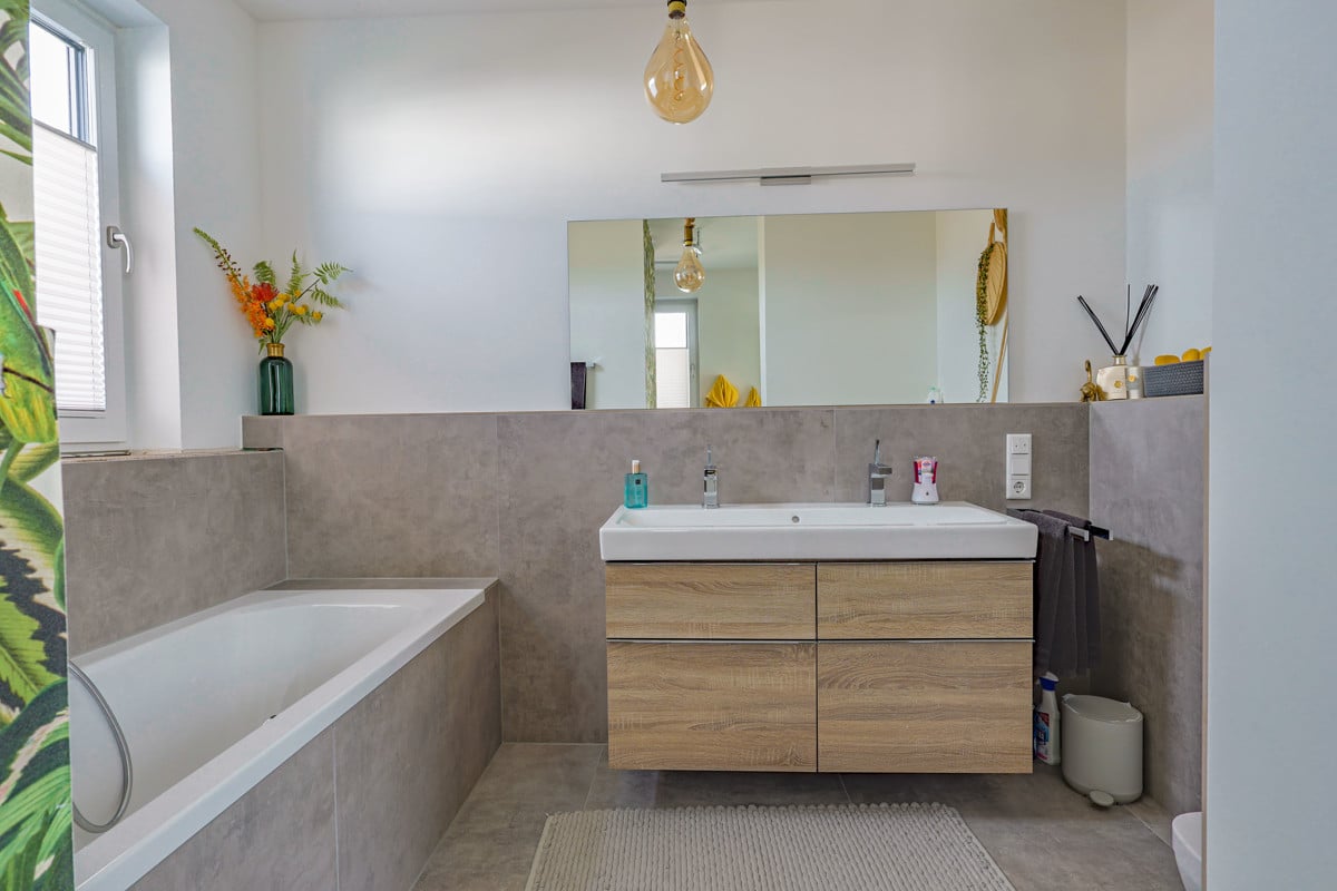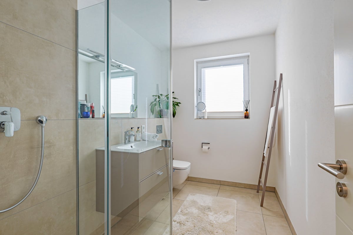 • Hochwertige Ausstattung: Fußbodenheizung mit Kühlfunktion, Lüftungsanlage und modernen Fliesen