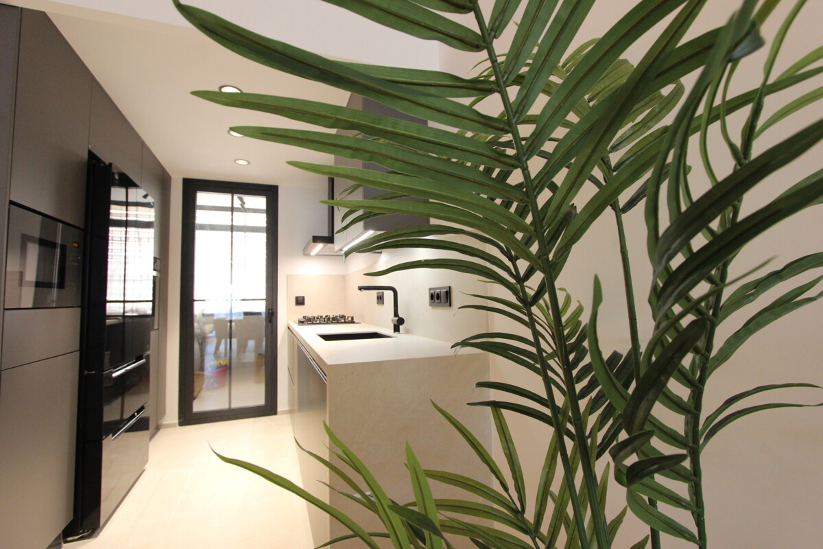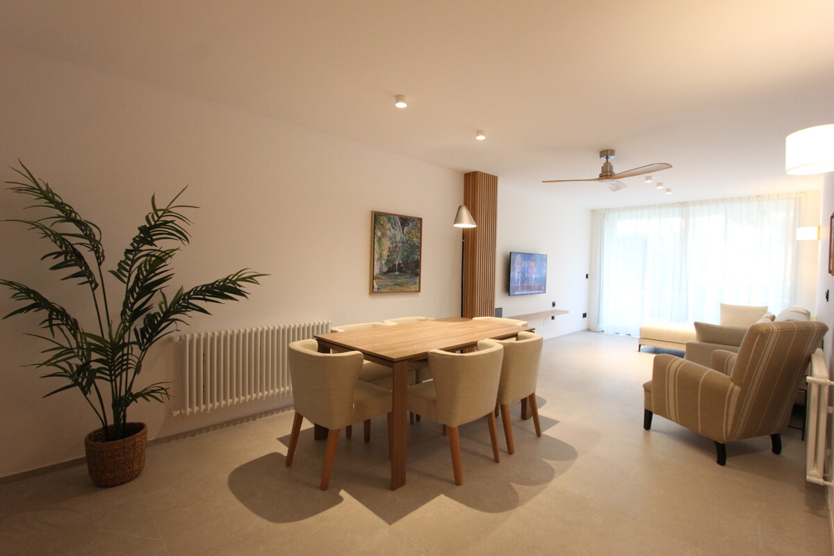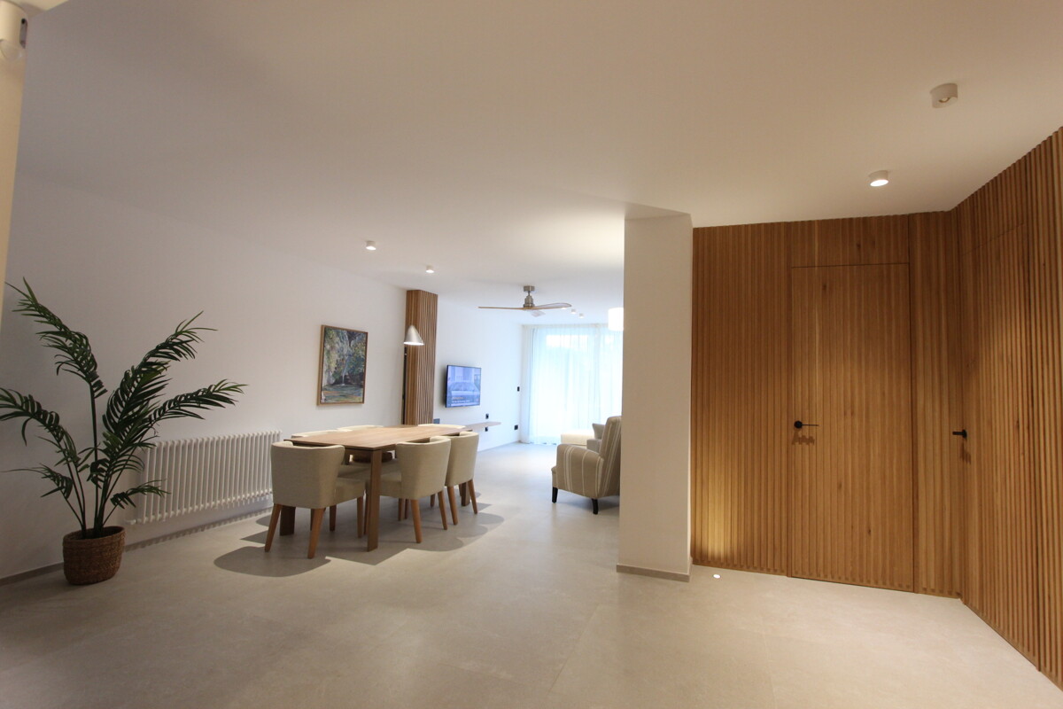 Mit Platz für bis zu sechs Personen verfügt das Apartment über drei großzügige Doppelschlafzimmer und zwei moderne Badezimmer. Die offene und lichtdurchflutete Raumgestaltung schafft eine angenehme Atmosphäre von Komfort und Eleganz. Die direkt an den Garten angeschlossene Terrasse lädt zum Entspannen, Essen im Freien oder zum Genießen der mediterranen Umgebung ein.