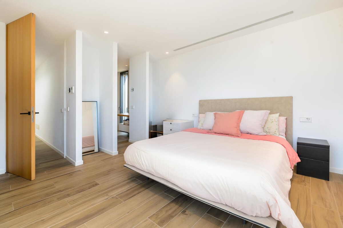 Im Obergeschoss befinden sich drei Schlafzimmer, darunter die Hauptsuite mit eigenem Bad und Terrasse mit herrlichem Meerblick – perfekt, um jeden Morgen mit dem Mittelmeer vor Augen zu erwachen. Zwei weitere Schlafzimmer teilen sich ein stilvolles Badezimmer.