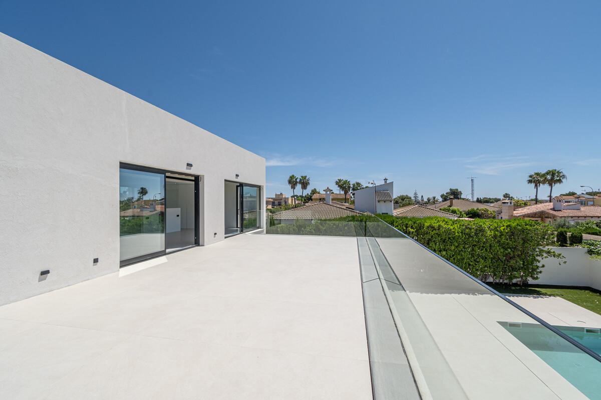 Diese elegante Villa in Badia Blava (Llucmajor) besticht durch ihre ruhige Lage in unmittelbarer Nähe von El Arenal und bietet ein außergewöhnliches Wohnambiente auf höchstem Niveau.