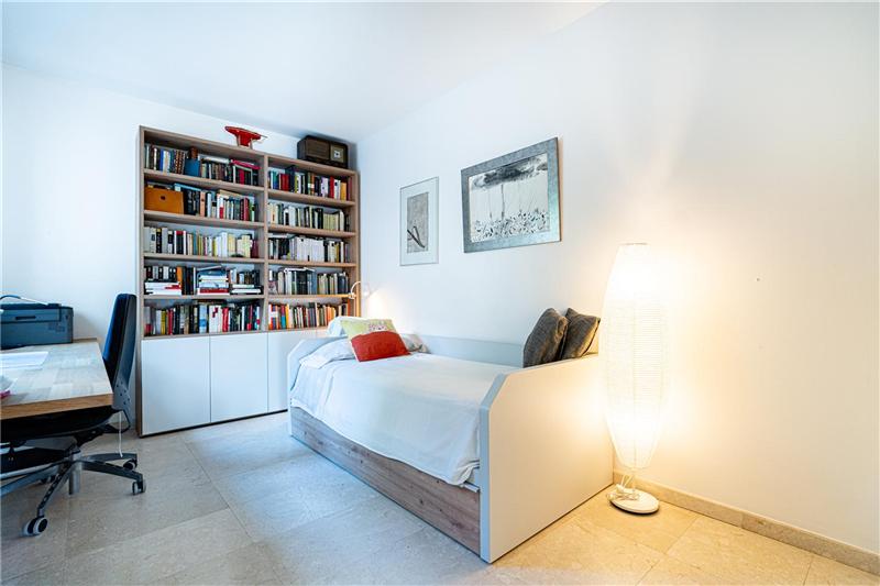Es stehen vier große Doppelschlafzimmer zur Verfügung, zwei davon mit direktem Zugang zur Terrasse. Die Wohnung umfasst zudem zwei voll ausgestattete Badezimmer, darunter eines en suite, sowie ein Gäste-WC. Eine überdachte Terrasse von 25 m² und eine Außenterrasse von 40 m² erweitern den Wohnbereich nach draußen.